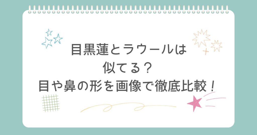 snowmanの目黒蓮さんとラウールさんが似ていると一部のファンから言われています。 目黒蓮さんとラウールさん、あんまり似てない気もするけど、どこが似てるんだろう? 今回は 目黒蓮さんとラウールさんが似てる? 目黒蓮さんとラウールさんの目や鼻の形を... -