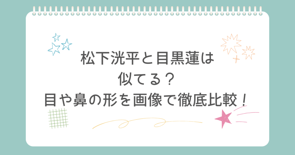 SNSで「松下洸平さんと目黒蓮さんって似てる?」「なんとなく雰囲気が近くない?」と話題になることがあります。 たしかにパッと見たときの空気感は似ている印象です。ただ、じっくり見ていくと似ているのは顔全体ではなく、目・鼻・口といった一部のパー... -
