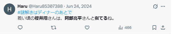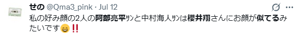 SNSで調べてみると阿部亮平さんと櫻井翔さんが似ているという意見が多くみられました。