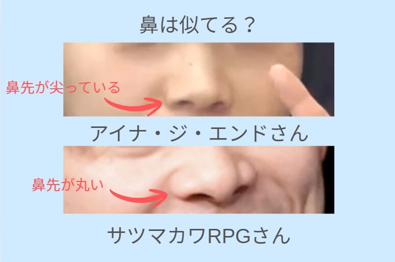 アイナ・ジ・エンドさんとサツマカワRPGさんの鼻を比較してみたところ、あまり似ていないことがわかりました。