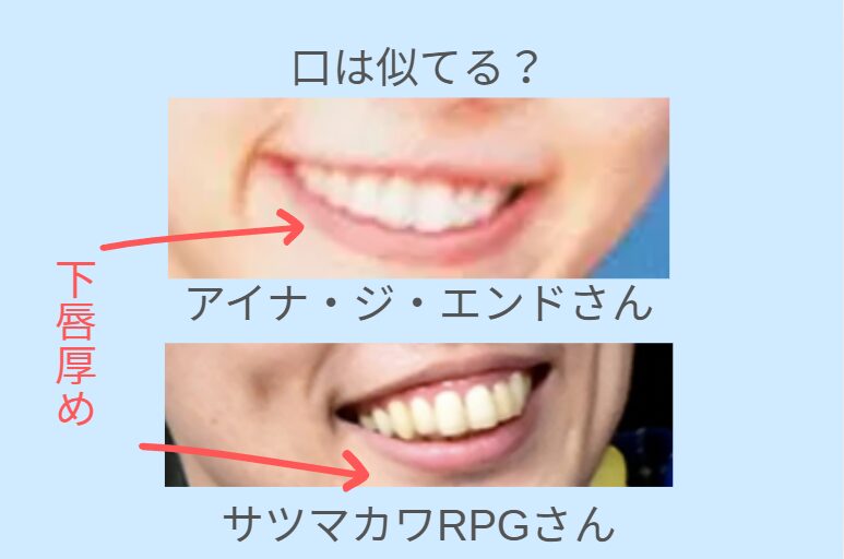 アイナ・ジ・エンドさんとサツマカワRPGさんの口を比較してみたところ、かなり似ていることがわかりました。