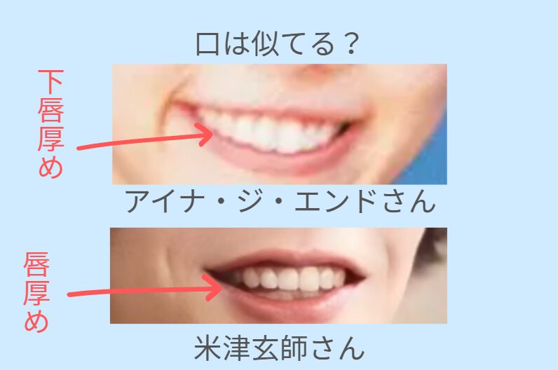 アイナ・ジ・エンドさんと米津玄師さんの口を比較してみたところ、似ていないことがわかりました。