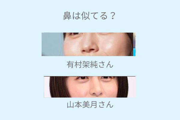 • 有村さんの鼻は小さめで丸みがある。山本さんはシャープな鼻筋をしている。
