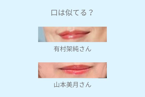 • 口元の雰囲気として、有村さんはふっくらと柔らかい唇。山本さんは薄めで輪郭がシャープ。