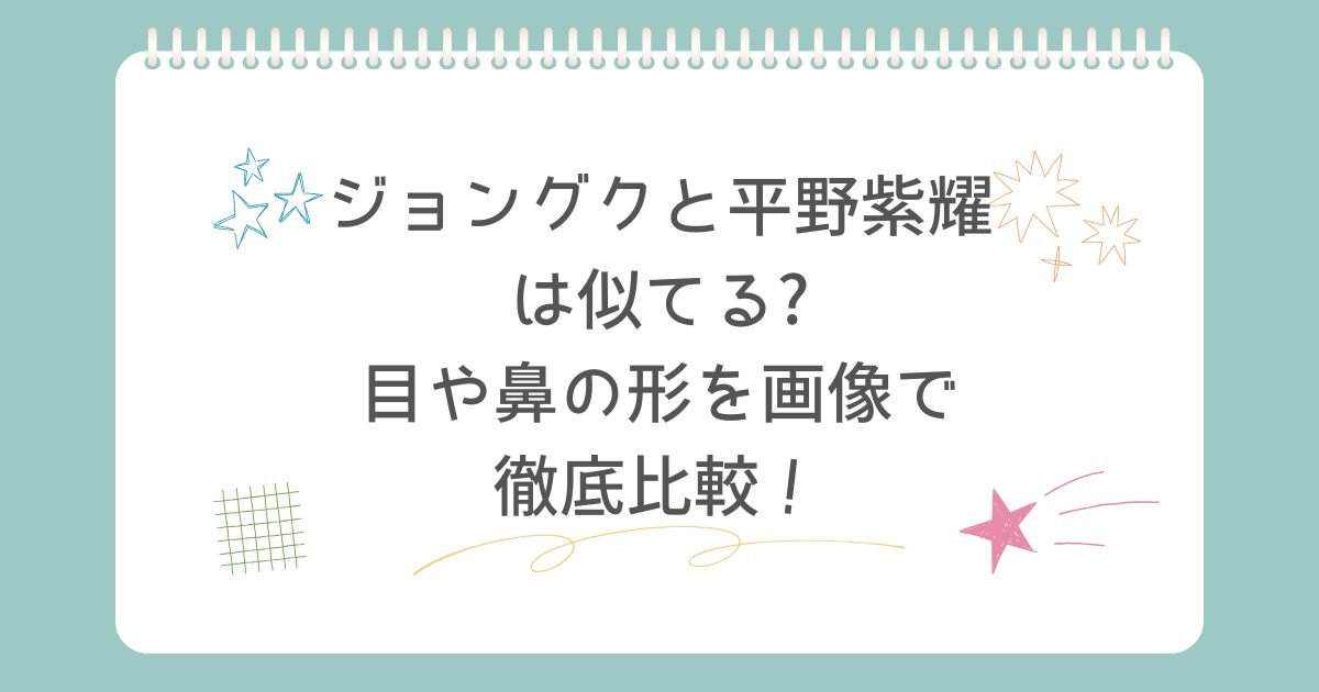 今回は、ジョングクさんと平野紫耀さんは似ているのか、画像を使って比較してみました。