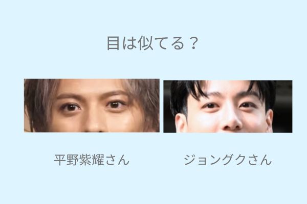 ジョングクさんと平野紫耀さんの目や鼻の形を画像を使って比較していきたいと思います。