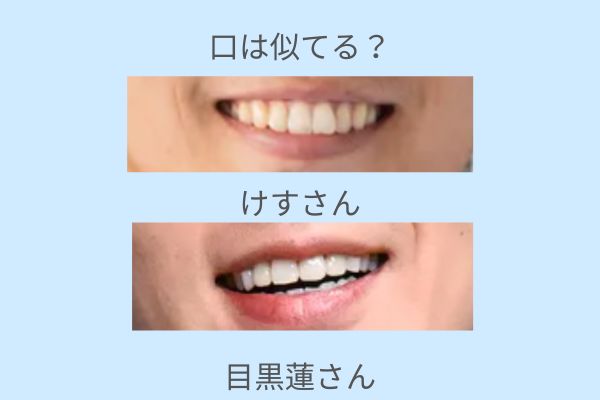 目黒蓮さんとけすさんの口を比較してみたところ、笑った時に口角がしっかり上がるところがよく似ていることがわかりました。