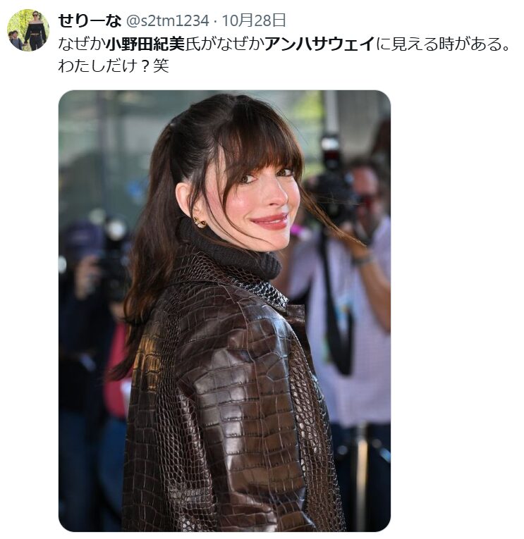 - 小野田紀美さんとアン・ハサウェイさんが似てる?